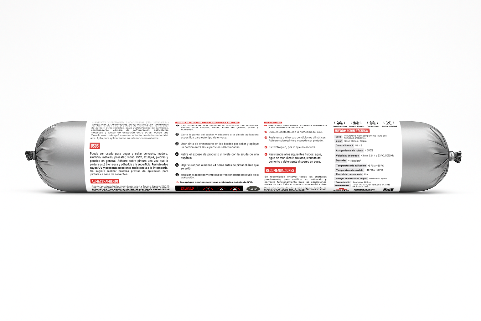 Puede ser usado para pegar y sellar concreto, madera, aluminio, metales, poliéster, vidrio, PVC, azulejos, piedras y paneles en general. Adhiere sobre pintura una vez qué la pintura esté bien seca y adherida a la superficie. Resiste a los rayos UV y presenta excelente resistencia a la intemperie. Se sugiere realizar pruebas previas de aplicación para pinturas a base de solventes.